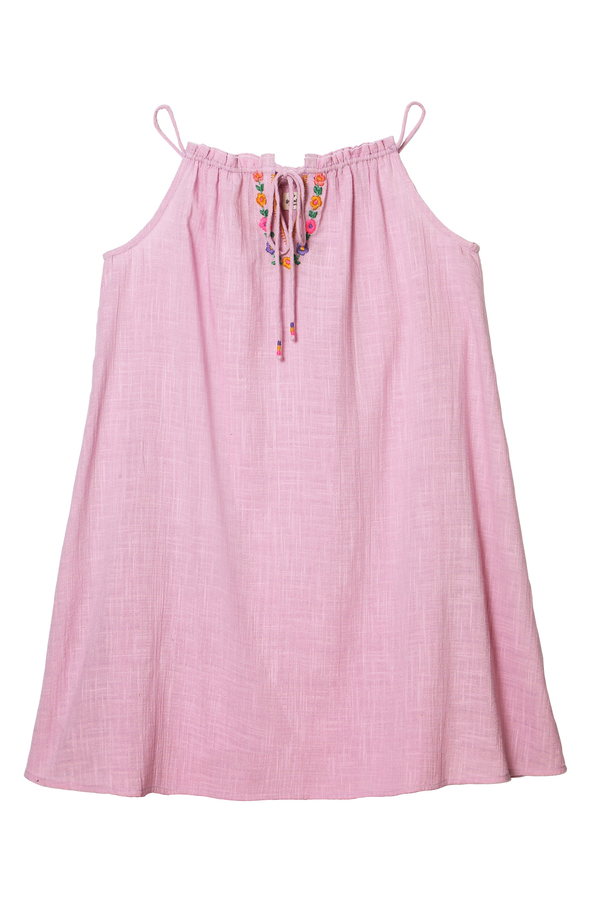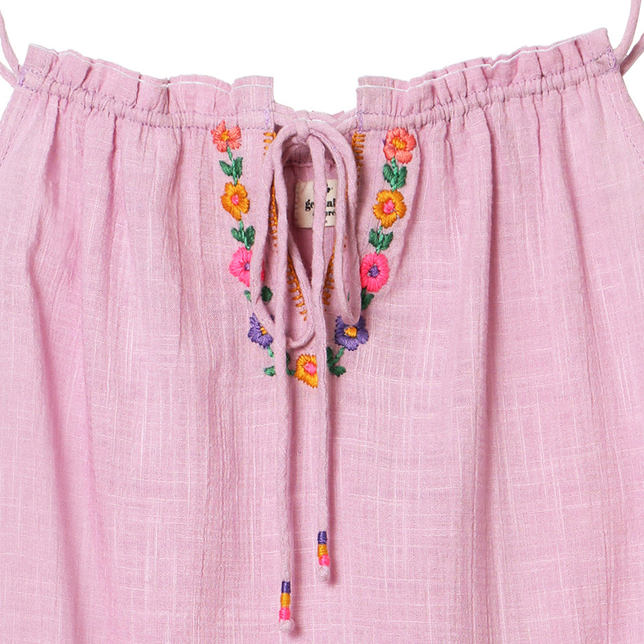 Our Aurelia mauve nightgown with floral embroidery is made of 100% waffle-weave cotton. Its shape is simple and flowing. It gathers  and adjusts at the neckline with its adjustable drawstring, finished with embroidered threads. The neckline is embroidered with multicolored flowers. A touch of 70s French style.